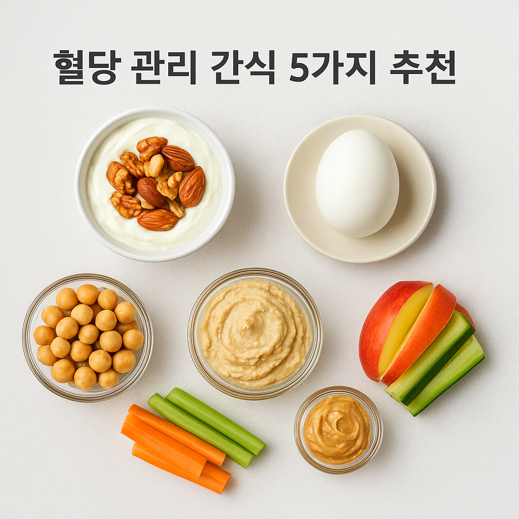 혈당 관리에 좋은 간식은 따로 있습니다. 그릭요거트, 삶은 달걀, 콩류, 채소, 과일 조합으로 건강하게 혈당을 지켜보세요. 1. 그릭요거트 + 견과류그릭요거트는 일반 요거트보다 단백질이 풍부하고 당 함량이 낮아 혈당 관리에 적합합니다. 여기에 아몬드, 호두, 피칸 같은 견과류를 소량 곁들이면 건강한 지방과 식이섬유가 더해져 혈당이 급격히 오르는 것을 막아줍니다. 단, 시중에서 판매되는 가당 요거트는 오히려 혈당을 올릴 수 있으니 반드시 무가당 그릭요거트를 선택하는 것이 좋습니다.효과: 단백질과 유산균이 풍부해 포만감을 주고, 견과류의 건강한 지방이 혈당 상승을 완만하게 해줍니다.팁: 무가당 그릭요거트를 선택하고, 아몬드·호두·피칸 같은 견과류를 소량 곁들이세요. 2. 삶은 달걀간단하면서도 든든한 혈당 관..